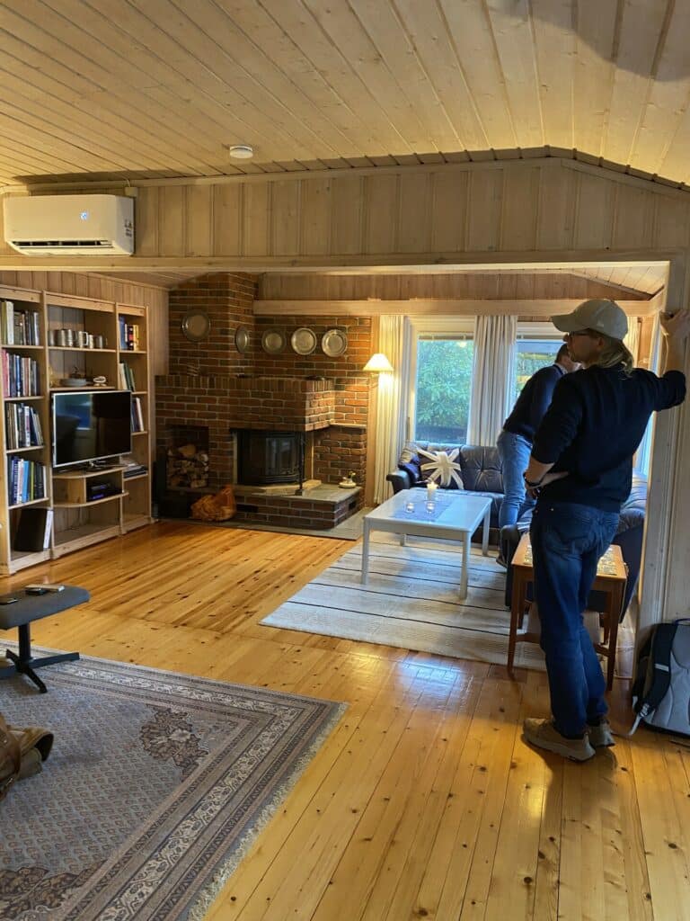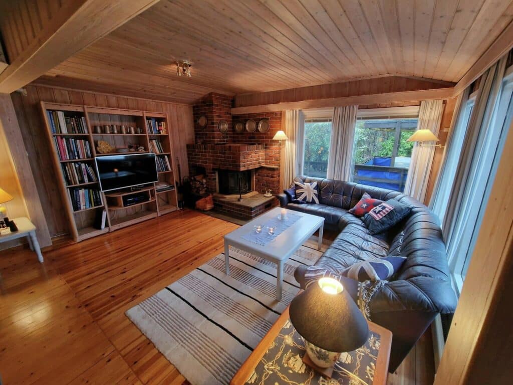 Det er altså her drømmehytta til Anne Louise og Øyvind fra Sætre i Hurum ligger. Hytta ble bygd i 1969, og har fått seg noen påbygg siden den gang. Og selv med en del år bak seg, beskrives hytten som godt vedlikeholdt av tidligere eier – på tross av gul furu på vegger og gulv.