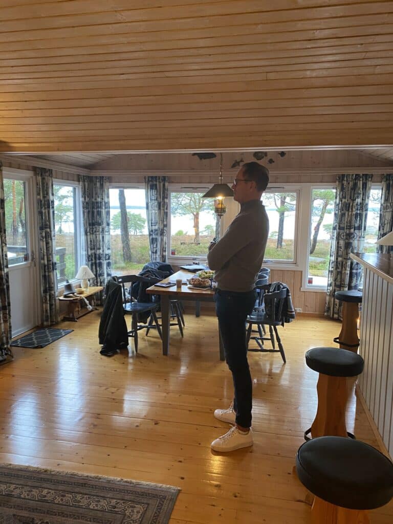 – Det er en sliten 80-tallshytte, 70-tallshytte og kanskje 2000-tallshytte, for det er et salig rot her! Det skal vi rydde opp i! Dette skal bli en hytte fra 2023!