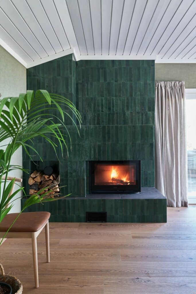 Prikken over i-en innvendig er den gamle, rødbrune 80-tallspeisen, som har fått seg en smaragdgrønn utsmykning, i harmoni med resten av det skogsgrønne tapetet som Halvor har limt opp på veggene.