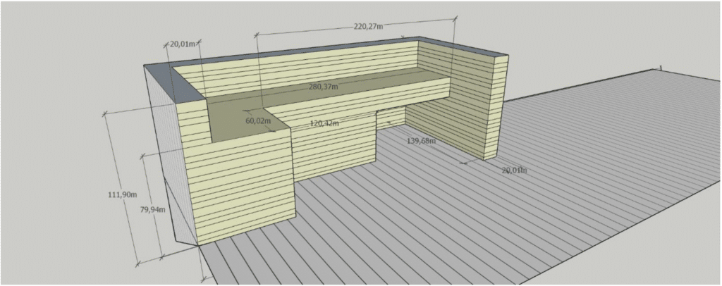 Den ferdige bredden på grillplassen er 320 cm, og dybden på benken er 60 cm.