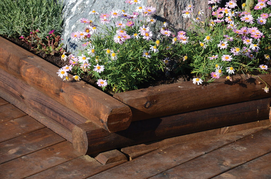 Planter blir enklere å stelle når de avgrenses fra resten av hagen med en kant. Et tips er å ramme inn bedet med MøreRoyal® sviller brukt på ulike måter. Slik får du vakre blomsterbed du kan ha glede av fra tidlig vår til sen høst.
