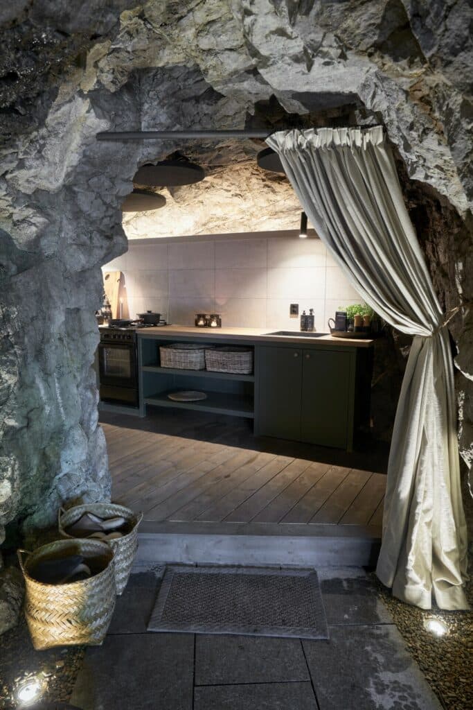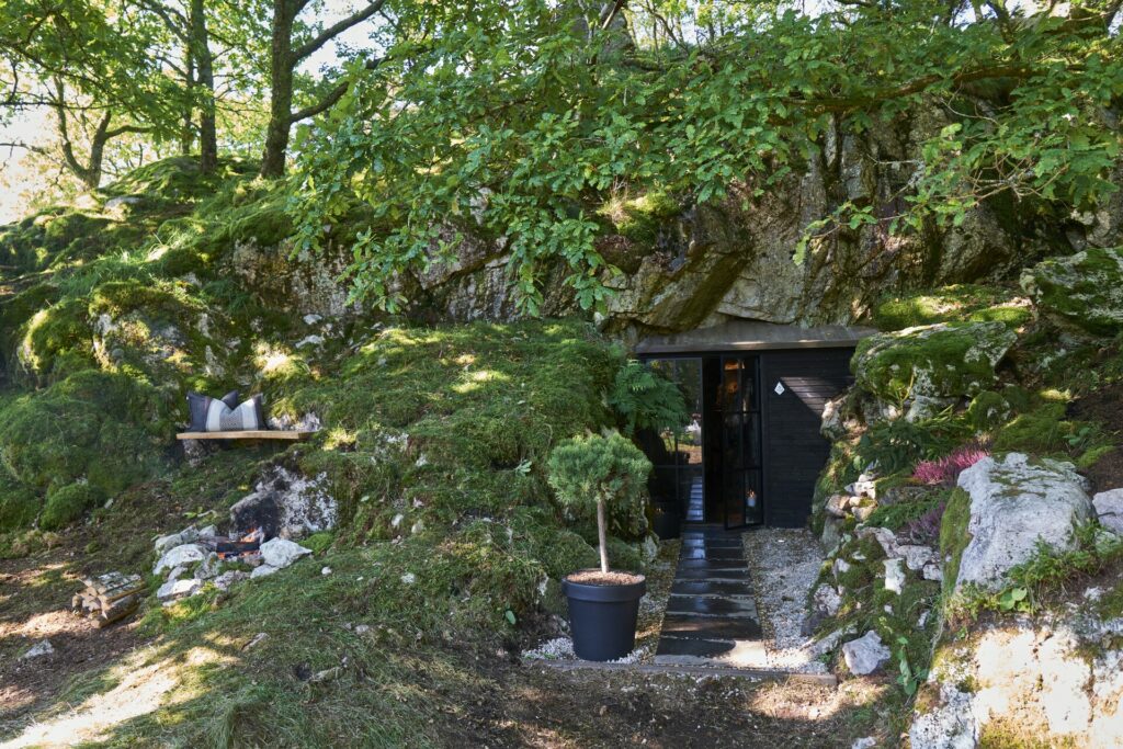 Dermed er det klart for Halvor til å forandre inngangspartiet utvendig – fra behovet for skjult inngang i 1943, til en innbydende og koselig versjon i 2024. Halvor har rett og slett samlet litt stein, og så planter han naturlige vekster som kunne vært der fra før, som lyng og krypeiner.