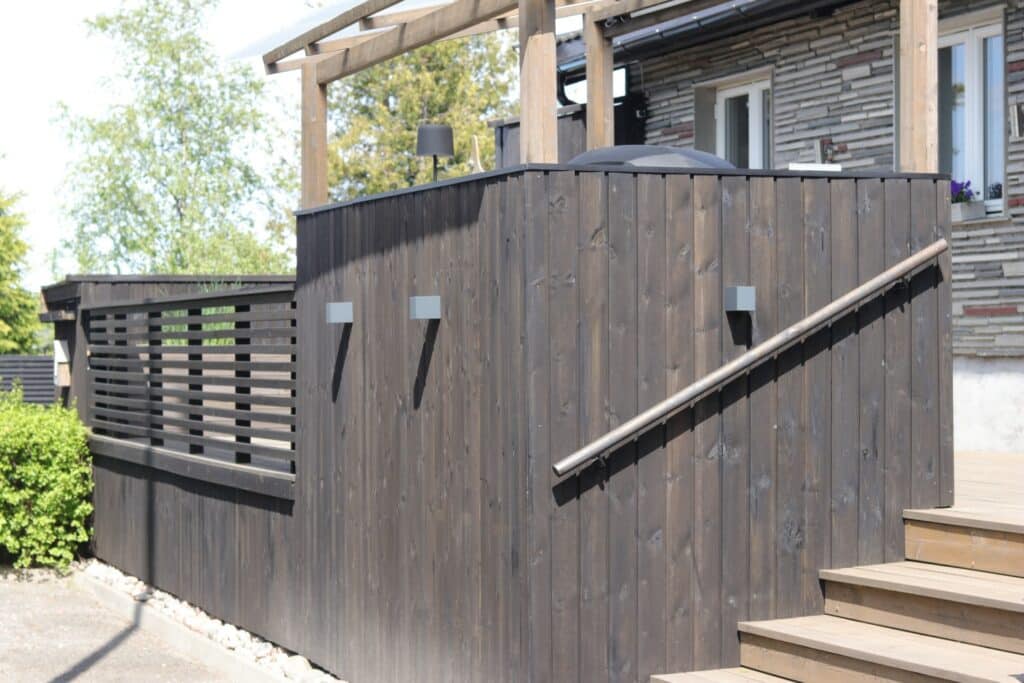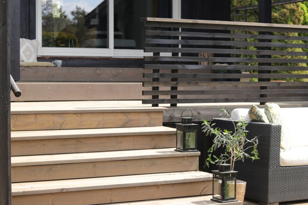 Et rekkverk til terrassen har først og fremst en viktig sikkerhetsfunksjon når terrassen bygges et stykke over bakkeplan. Men rekkverket er også selve prikken over i’en, og et godt utført rekkverk har utrolig mye å si for utseendet på terrassen. Rekkverk med liggende lekter gir en moderne og stilren finish, og er enkelt å få til. Sjekk ut hvordan vår gjestedesigner Anette Wie ferdigstilte sitt terrasseprosjekt, med et stilig rekkverk av lekter i MøreRoyal.