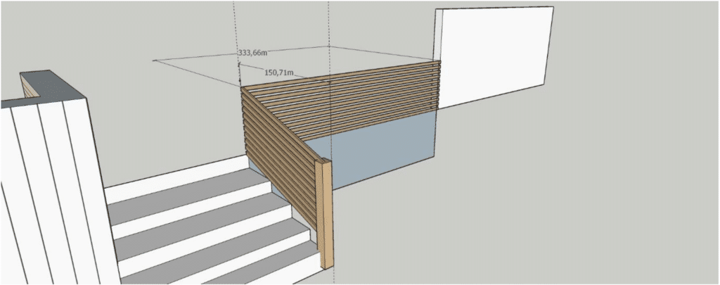 Vi vatret opp hvor høyt vi ønsket å ha rekkverket før vi sagde stolper til hvert spikerslag.