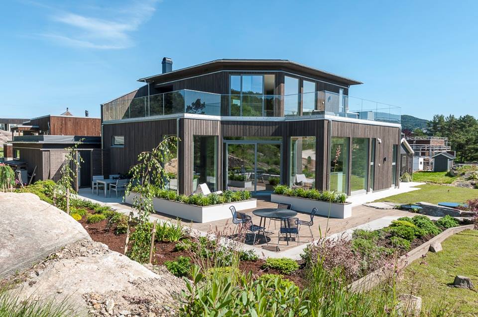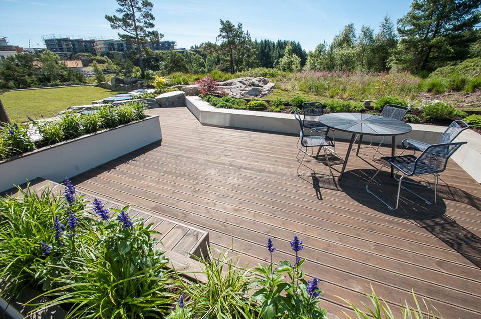 I dette prosjektet designet Kjersti Bergersen hagen etter familiens behov og ønsker, og lekkert ble det. MøreRoyal® produkter ble brukt til terrassedekke, bedomramming og gjerder.
