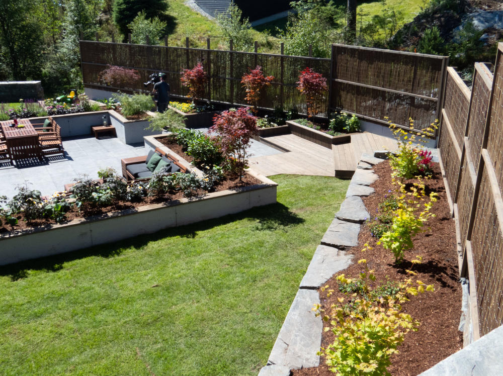Her ble en bakhage designet med flere soner med MøreRoyal® i kombinasjon med steinheller.