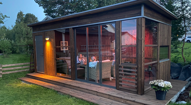 Beate og familien har med andre ord oppnådd akkurat det de var på jakt etter. Nå samles de ofte i hagestuen for sosialt samvær med venner og familie. Her er det deilig å koble av når man har lyst til å komme seg ut av huset, og hagestuen brukes flittig av både ungdom og voksne til langt utpå høsten.