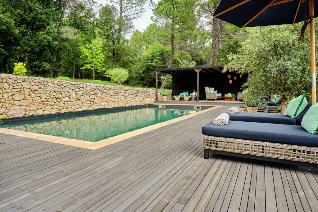 Dette er et mye mer stramt og moderne gulv enn de de tradisjonelle terrassegulvene og virkelig dødskult. Det er jo et helt nytt uttrykk som vi også har brukt rundt et basseng i en episode av Eventyrlig Oppussing fra Provence.