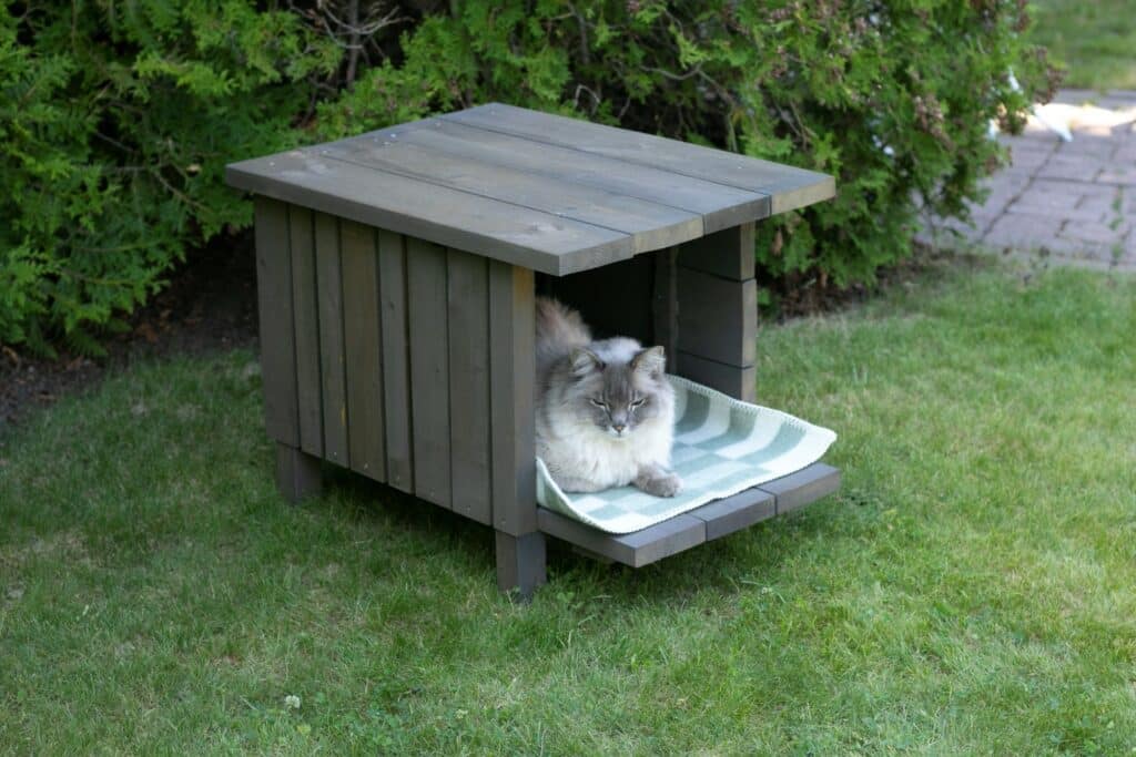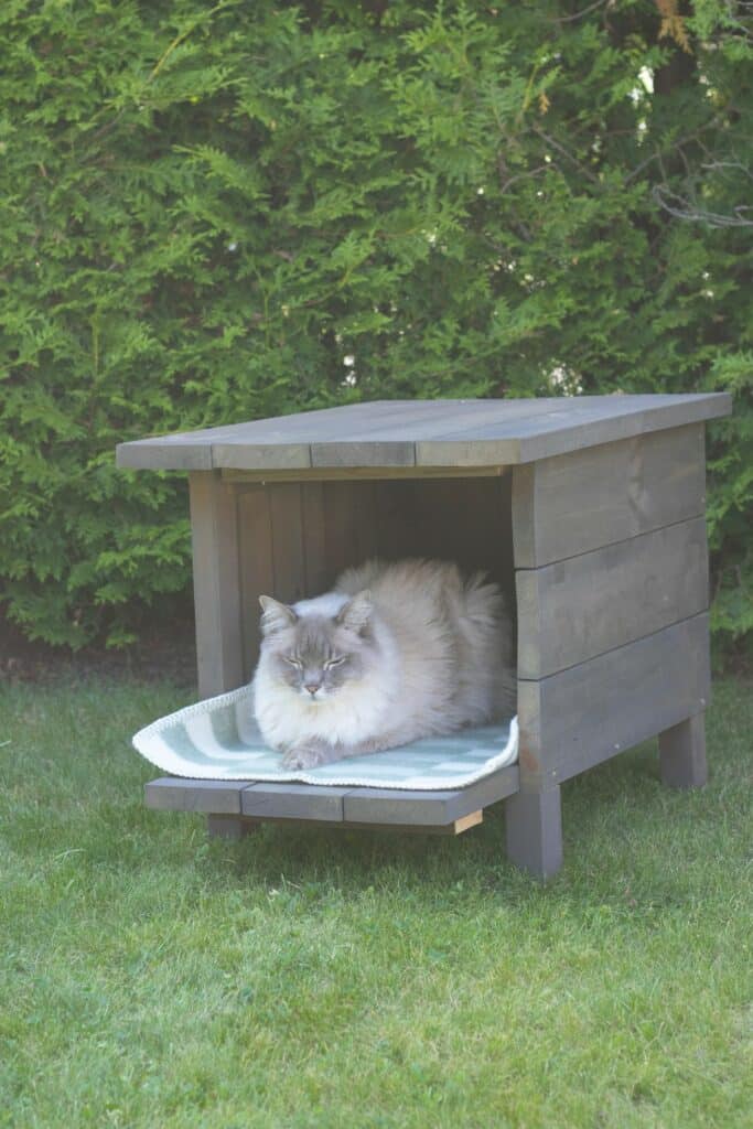 Familien Wies katt, Stella, er egentlig en innekatt. Men han liker seg også godt i den avgrensede hagen, og selvfølgelig trengte han sitt eget utendørs kattehus. Bygget er perfekt for å tilby skygge og komfort på varme dager. Ikke rart Stella stortrives i huset sitt!
