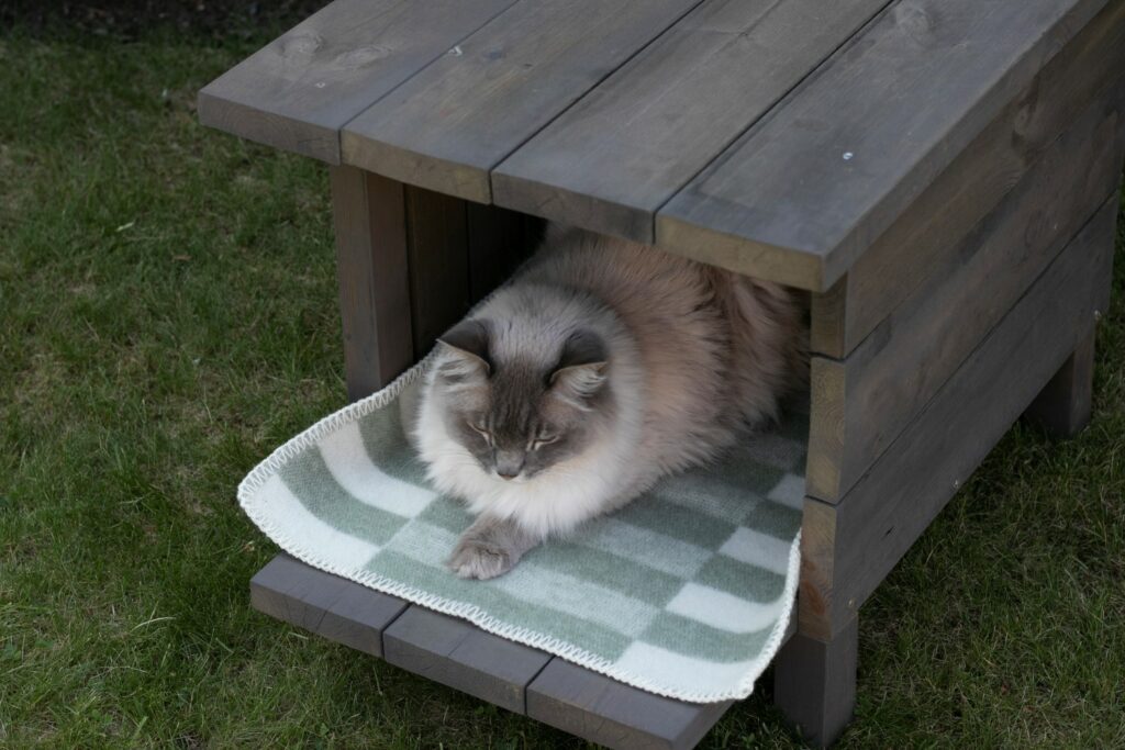 Å skape små kreative byggeprosjekter av restematerialer er både gøy og god miljøskikk! Vår kreative MøreRoyal-ambassadør, Anette Wie og familien, lar ingen MøreRoyal gå til spille. Her har til og med familiens katt fått et koselig lite krypinn i hagen i le for vær og vind. Med sitt eget kattehus i eksklusiv MøreRoyal kan priviligerte puser skue utover sitt rike fra en egen trone i hagen.