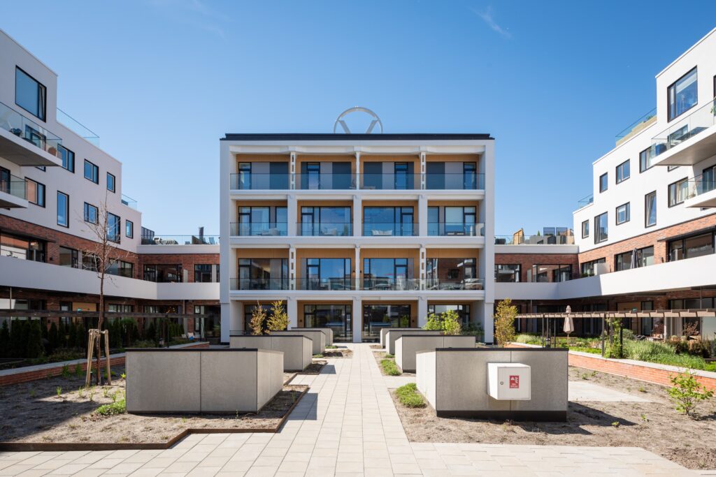 I et prosjekt med høye krav til materialvalg, var MøreRoyal et naturlig valg når de private utearealene skulle utformes i prosjektets 225 leiligheter. Faktisk ble hele 60.000 lengdemeter terrassebord levert til prosjektet. Med MøreRoyal fikk uteområdene umiddelbart en high-end finish. Materialene som leveres ferdig fargesatt og royalimpregnert fra fabrikken krever ingen etterbehandling utover gjenforsegling av nye kappflater.