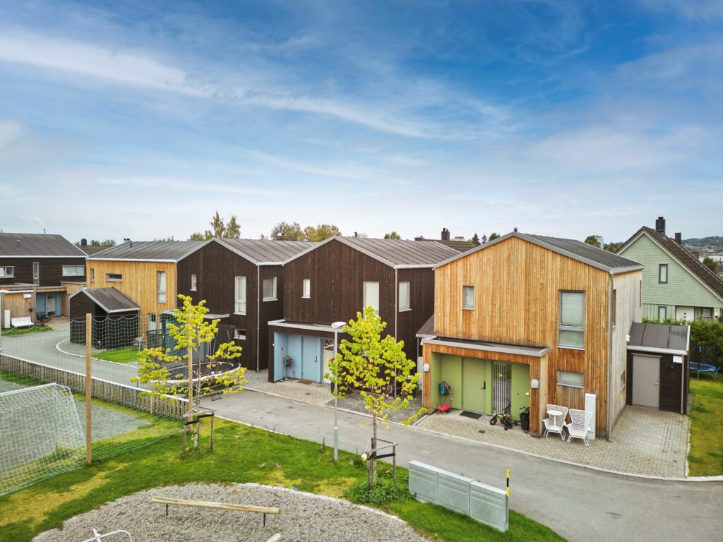 Legg også merke til rekkehusene og eneboligene som har fått kombinert Møreroyal trefasader med fargeglade plater fra Cembrit Solid, som gir en vakker kontrast i byggene.