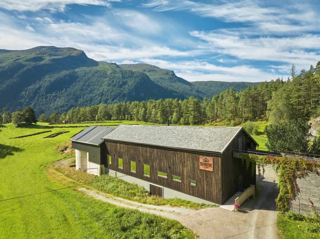 Svinvik Gard har kledd fasaden i MøreRoyal dobbelfals tett kledning 19×123 mm i fargen setersvart. Dobbelfals tett er et kledningsbord med en rett fals på begge sider. Dette gir et gjennomført, stilrent og stramt uttrykk. Dobbelfals tett benyttes derfor gjerne på moderne og minimalistiske bygninger, men er også ettertraktet for å skape en oppdatert fasadefølelse på historiske bygninger.