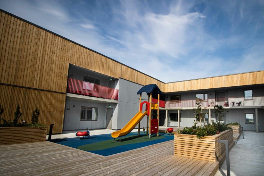 Arkitekt Embark utformet en spennende løsning for leilighetsarealet, der boenhetene omkranset et åpent tun i sentrum av bygget. Denne spesielle takhagen er rikt beplantet med trær og blomster. I tillegg byr den på egne sittegrupper, stort lekeområde og en fantastisk utsikt over skipsleia. Ikke rart leilighetene ble raskt omsatt til ivrige kjøpere.