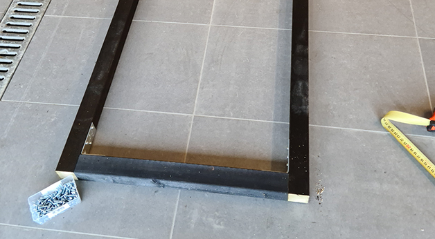 Dørene som skal monteres foran grillen monteres og skrus i ett stykke. Deretter kappet vi den i 2. For økt stabilitet bør man bruke 2 skurer pr. festepunkt.