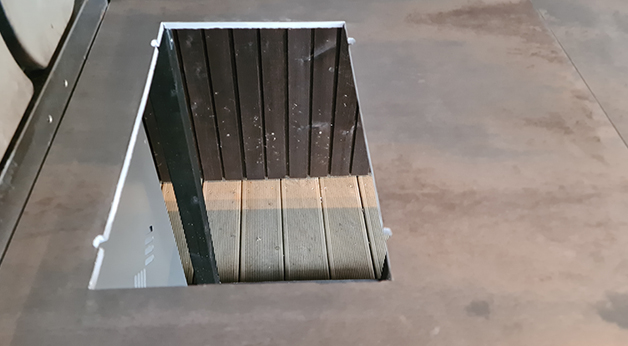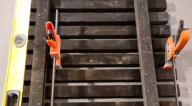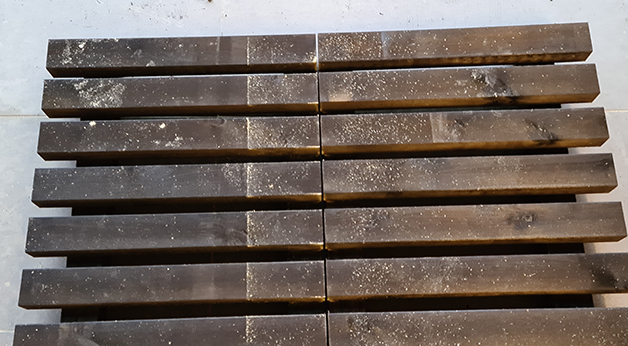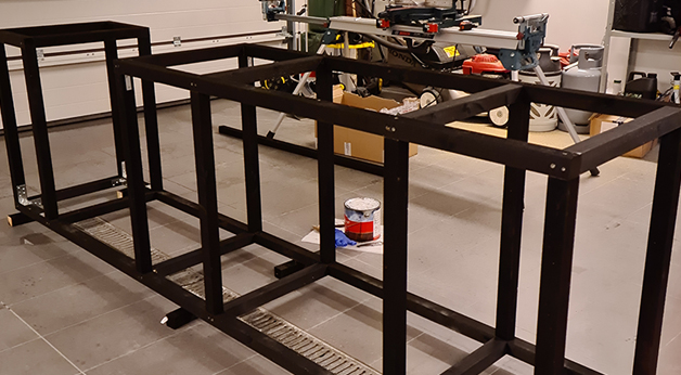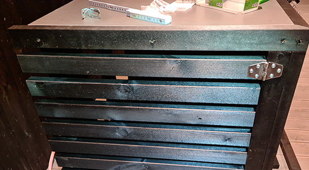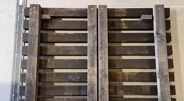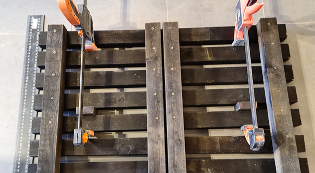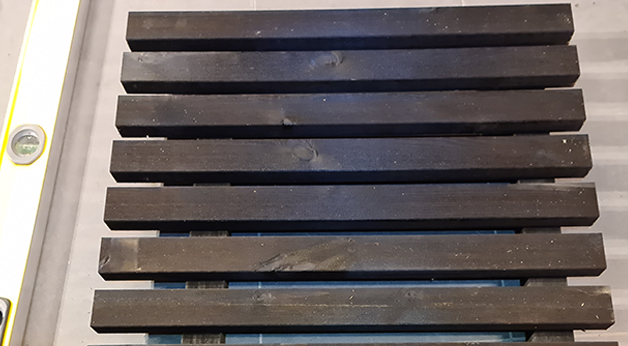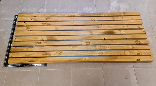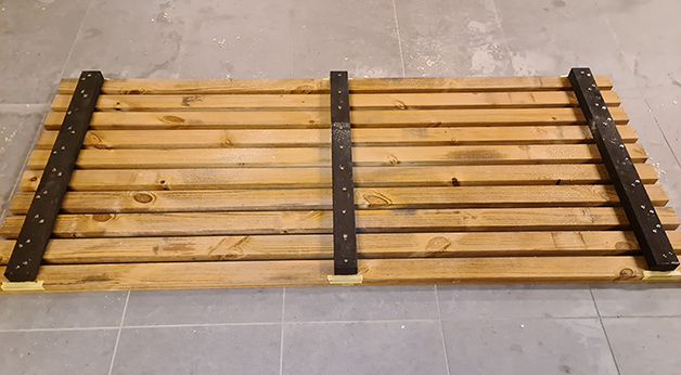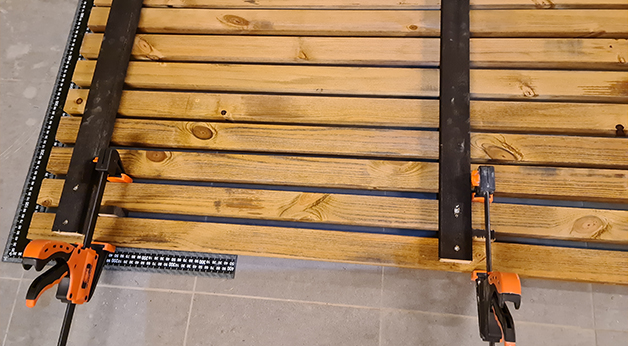 Lekter gjæres og skrus fast med svart lim. Husk å olje alle kappflater. 2 cm. avstand mellom lektene.