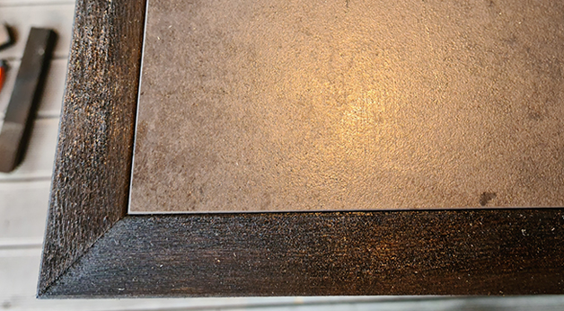 Som benkeplate har vi benyttet fliser som er limt fast i rammen.