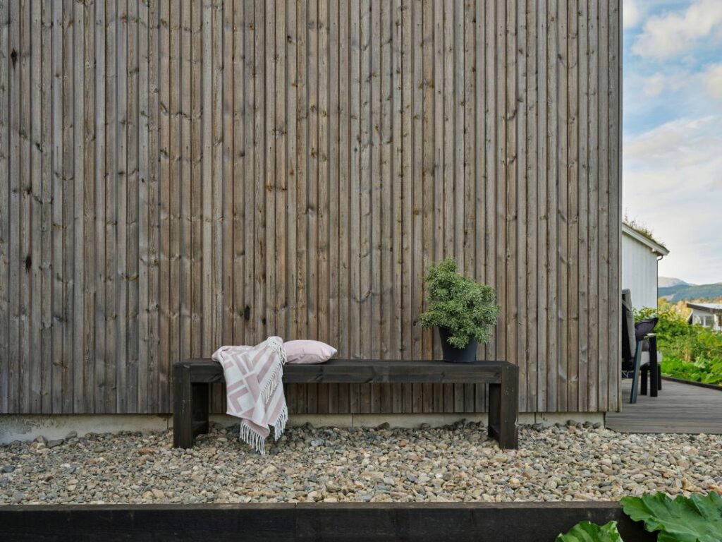 Grovt trevirke bidrar gjerne med den effekten. Den helhetlige tankegangen i prosjektet til Marte er gjenkjennbar både ute og inne, og som en fortsettelse på prosjektet sysler hun og mannen nå med uteområdet.