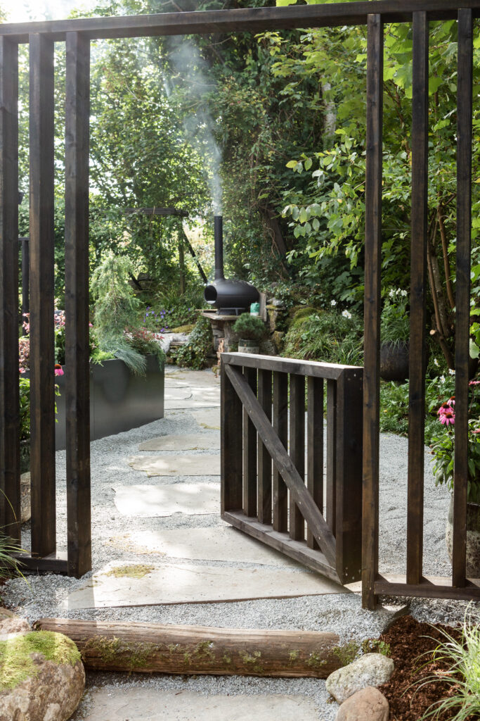 Designer Yvonne ønsker å gi nytt liv til den gamle og overgrodde hagen ved å definere bruksområder og legge til rette for funksjonelle soner – som skaper et naturlig og sjarmerende utemiljø. Det er viktig for Yvonne å ta vare på hagens eksisterende elementer og å bevare skogsfølelsen og harmonien i uterommet. Hun skaper en lysere og mer interessant atmosfære ved å slippe inn mer naturlig lys og å plante hvite blomster i skyggefulle områder. I tillegg binder de sammen ulike soner og gjentar farger fra ulike elementer i hagen for å skape en helhetlig uteplass. Yvonne ønsker også å beholde en del av hagen privat for å unngå innsyn og gjøre hagen mer intim. Samtidig sørger hun for at hagens ytre og inngangsparti er velutformet og ønsker velkommen, og oppnår dette ved å bygge blant annet en sjarmerende port av MøreRoyal lekter i setersvart. Designer Yvonne henter mye inspirasjon fra den eksiterende hagen og tilfører et hint av en moderne og naturlig stil i valg av møbler og elementer.