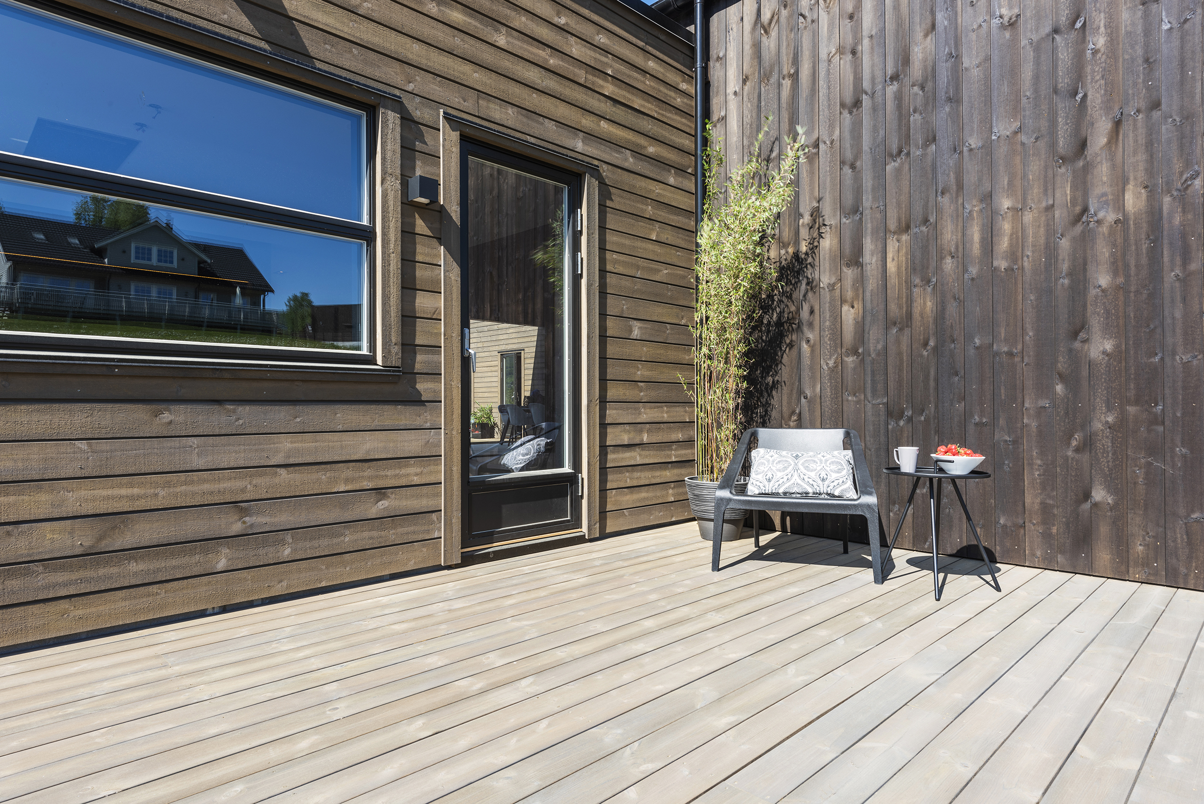 Golvet på din uteplats uppfyller mer än en funktion – det ger även många valmöjligheter för att komplettera fastigheten eller stugan. Klassisk stil med eller utan rillor, modern stil med rakare kanter och en yta med struktur som ger en känsla av att den är borstad. Valet är ditt. Altan i MøreRoyal har många olika fördelar, läs mer om fördelarna här