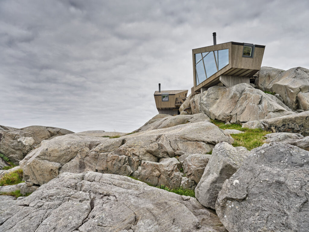 Panoramastugorna på Karmøy är ett unikt hamnprojekt som värkligen bygger på samspelet mellan modern arkitektur och spektakulär belägenhet längs kusten. Här var avsikten att bygga campingstugorna så nära in i landskapet som möjligt, samtidigt som man spelade på styrkorna av omgivningen. Resultatet blev tre otroligt stiliga Micro stugor klädd med grå MøreRoyal från topp till tå. Här kan man ta in allt som atlanten har att bjuda på i moderna och vackra stugor och omgivningar.