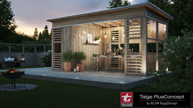 Talgø PlusConcept er utviklet i samarbeid med BLOM arkitekter, og siden alle elementer til PlusConcept-systemet leveres med MøreRoyal-materialer får du en utestue eller utebod som både er vakker og varig. Dobbelt behandlet er nemlig dobbelt så bra!